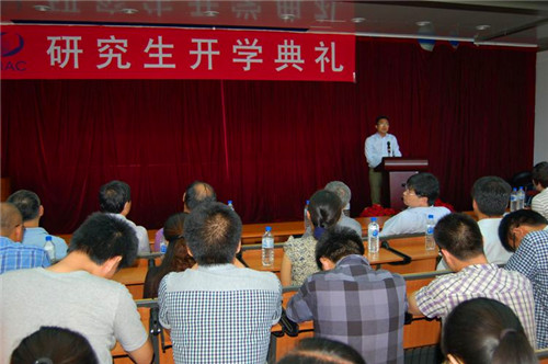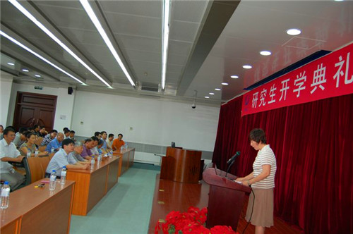 铿锵的国歌声拉开了开学典礼的序幕。所长助理杨小牛研究员首先热烈欢迎来自祖国四面八方的有志学子加入应化所大家庭,接着对应化所从建所以来的发展以及研究生教育两方面做了详细的介绍,其中包括长春应化所的发展历程,科研成果,科研装备,机构设置,人才教育,成果转化。杨小牛研究员希望新入所的研究生在应化所高起点的平台上茁壮成长、成才,希望同学们在自己的母校---应化所,用自己的“青春梦”织就“应化梦”,共同将长春应化所打造成具有鲜明特色与核心竞争优势的国际一流研究机构。