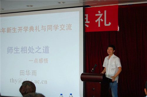 年轻研究员代表田华雨老师幽默诙谐的讲话将开学典礼推向了高潮,他与同学们交流了“师生相处之道”的一点感悟,以学生、老师不同的角度指导新生尽快找到最利于自身成长的方式,明确提出师生相处中沟通的重要性,教学相长。并对新生提了几点建议:做科研要有坚韧的心,要有良好的心态,要有敢于奉献的精神。并预祝新生在长春应化所实现自己的梦想。