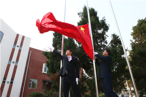 当鲜艳的五星红旗在伴随着《义勇军进行曲》冉冉升起的时候,在场的职工和研究生都深情地仰望国旗,从内心中发出对祖国母亲最真诚、最炽热的祝福。