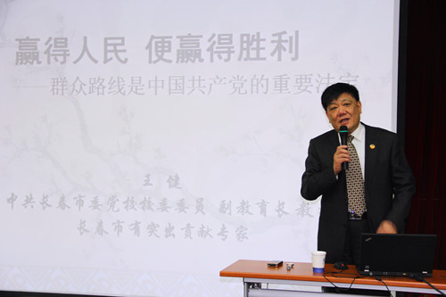 第三讲由长春市委党校党史党建教研部主任王健教授做题为《赢得人民 便赢得胜利——群众路线是中国共产党的重要法宝》的报告,对群众路线教育实践活动进行深度解读。王健教授从党的群众路线与马克思主义唯物史观、群众路线与执政党的建设和群众路线是中国共产党成功的重要法宝三个方面详细阐述了赢得人民便赢得胜利这一重要历史经验。