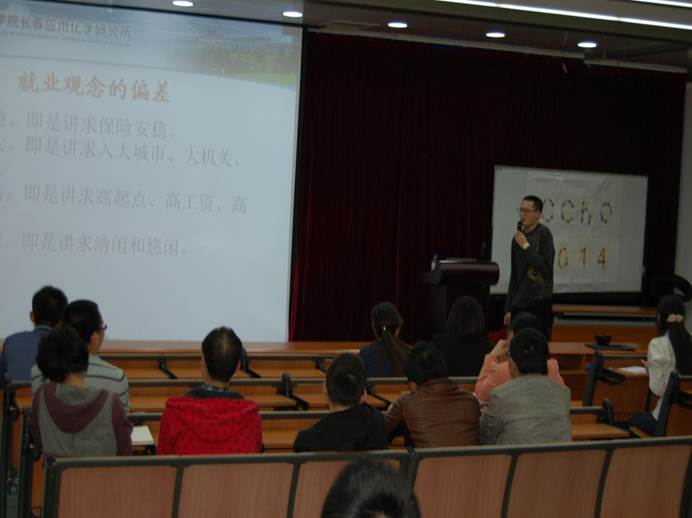 2014年4月29日下午,长春应化所研究生部、人事处和研究生学生会联合举办了职业规划与就业指南讲座。讲座邀请长春应化所人事处常志浩老师主讲。