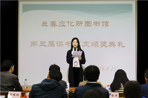 资产处副处长张斌宣读了获奖名单,并表示图书馆将一如既往的为大家创造良好的读书环境,让爱读书的人聚在一起相互交流,营造应化所浓厚的文化氛围。张斌副处长还向到场的本届评委赵凤玉研究员、门永峰研究员、刘俊研究员颁发了聘书。