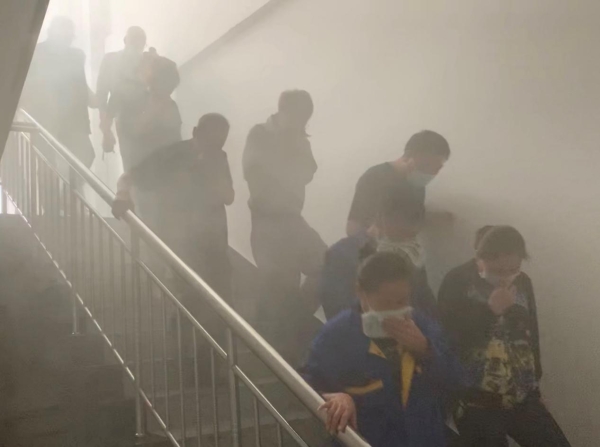 刘教官结合工厂、办公室、家庭、公共场所等地点的火灾案例,讲解了用火、用电等的消防安全知识,并对灭火器的使用,如何扑救初起火灾及逃生自救的方法进行详细讲解。现场授课结束,进行高层自救逃生演练,所有人在浓烟中通过消防逃生通道以正确、有序的方式逃离模拟火灾现场。同时消防控制室值班人员演练拨通119报警电话报警,义务消防队队员使用灭火器及室内消火栓将火扑灭。最后,在室外安全位置设置着火点,进行灭火器实操演练。